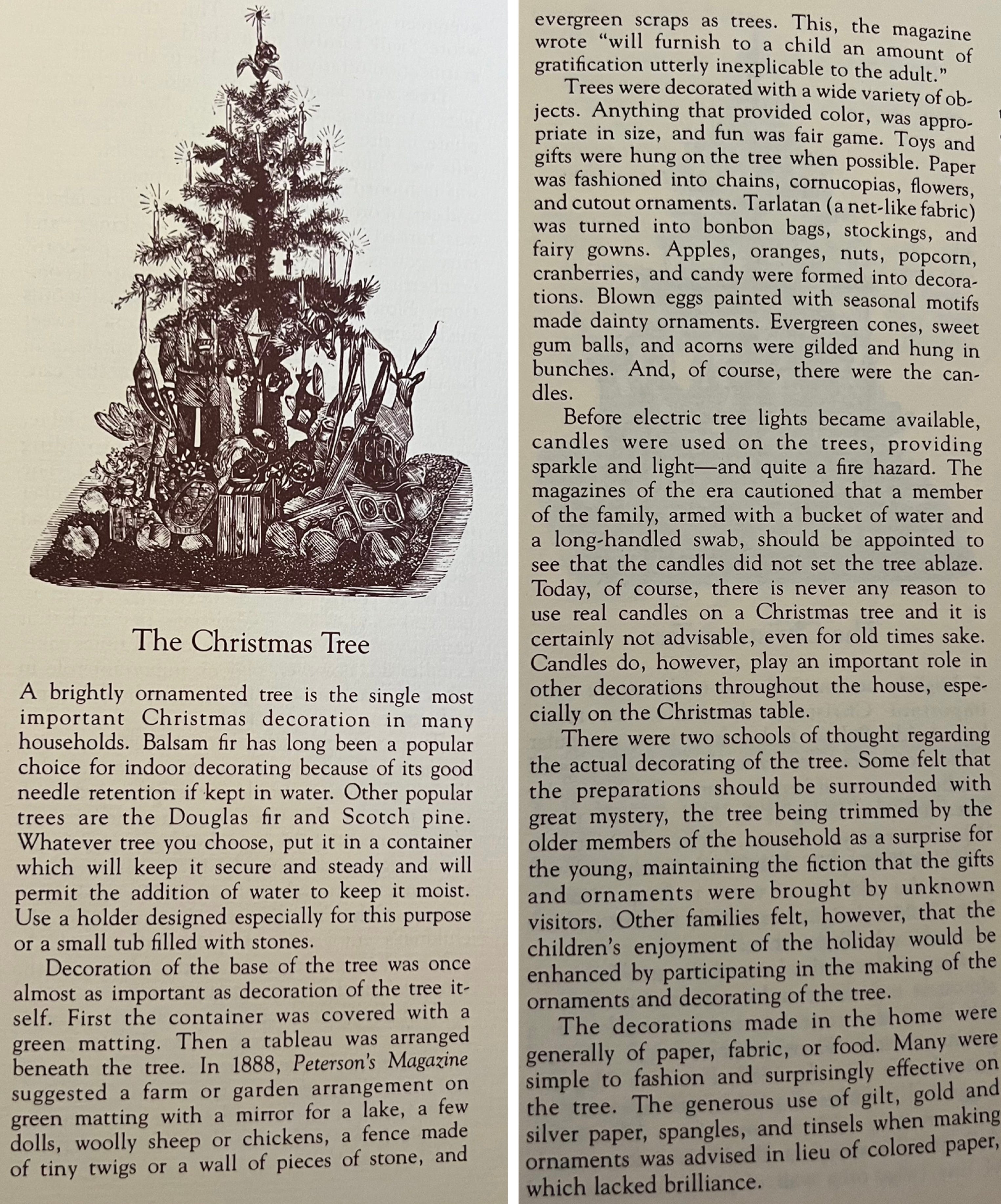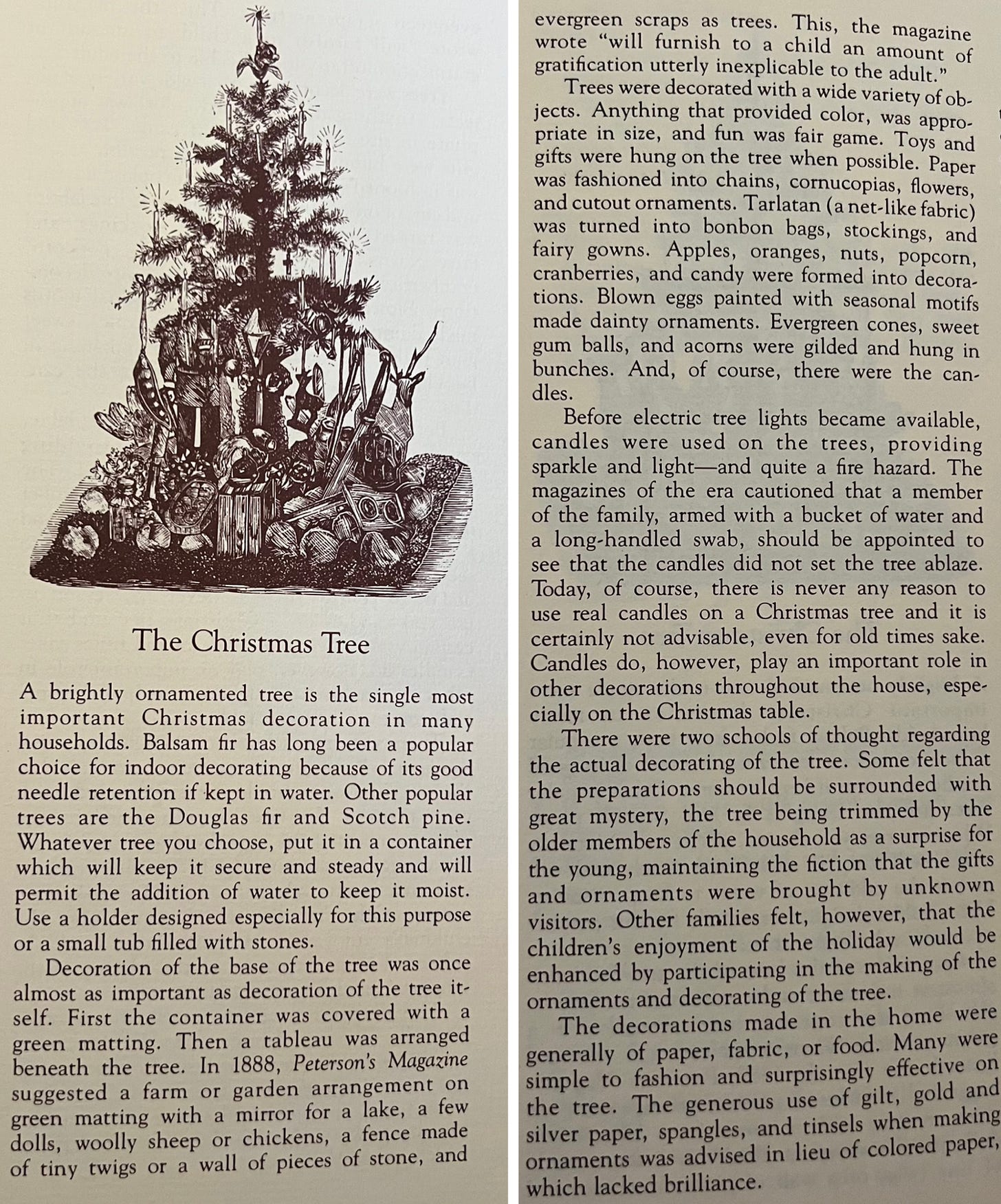 Of course the most essential element of Christmas decor is the tree. I love this passage from Celebrations, particularly the mention of the lost art of the tableau: