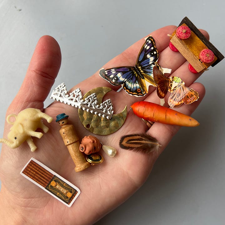 And under the tree is maybe the best mini world of all, that of the doll: her outfit changes, her accessories, her food and her toys, maybe a doll of her own.
